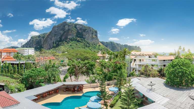 Das The Palace Aonang Resort ist eine ideale Wahl für Urlauber, die eine entspannte Zeit in Strandnähe verbringen möchten. Mit kostenfreiem WLAN, Parkplätzen und einem Außenpool mit Bergblick bietet das Resort alles, was Sie für einen erholsamen Aufenthalt benötigen. Die Zimmer sind klimatisiert und verfügen über Annehmlichkeiten wie Kabel-TV, Kühlschrank und Kaffee- und Teezubehör. Genießen Sie Getränke an der Bar des Resorts oder entspannen Sie im hauseigenen Spa. Für Aktivitäten wie Tauchen stehen Ihnen verschiedene Angebote zur Verfügung. Fahrräder und Autos können Sie vor Ort mieten. Der internationale Flughafen Krabi ist etwa 30 Autominuten vom Resort entfernt.