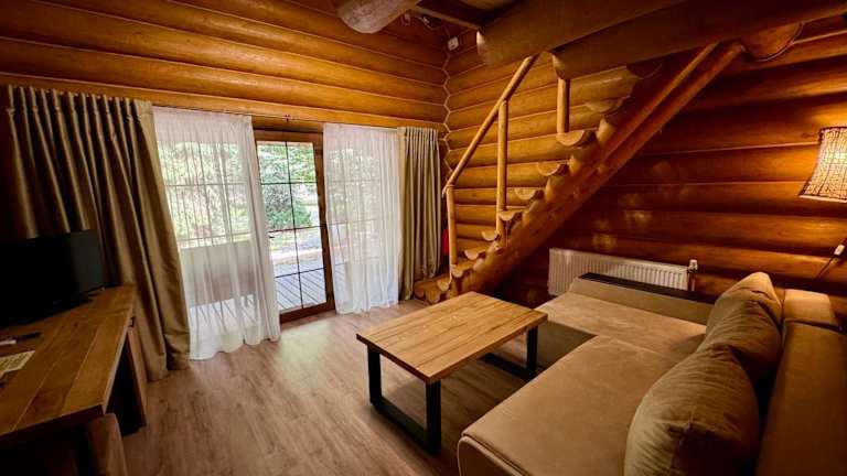Das Resort Stariy Prud bietet einen Kinderspielplatz und ist ideal für Familien mit Kindern. In der Umgebung können Sie Aktivitäten wie Wandern, Skifahren und Radfahren ausüben und die wunderschöne Natur genießen.
