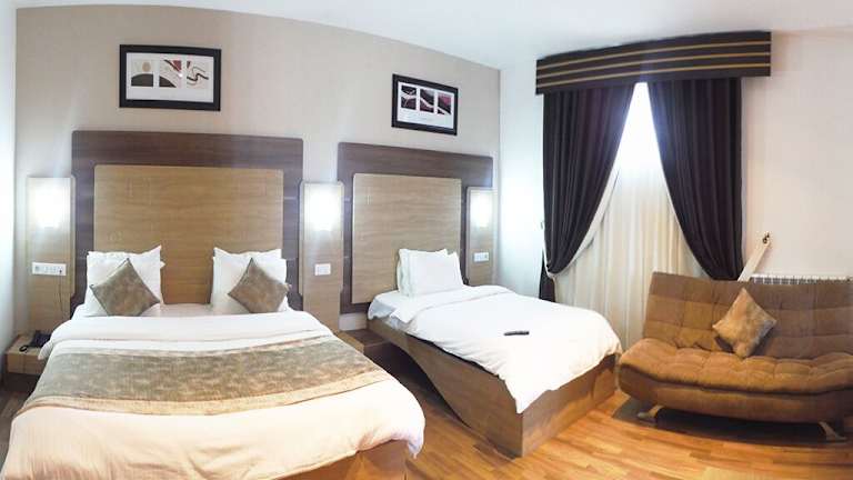 Die klimatisierten Zimmer der Unterkunft Retaj Moroni sind mit einem Schreibtisch, Wasserkocher, Kühlschrank, Minibar, Safe und Flachbild-TV ausgestattet. Jedes Zimmer verfügt über eine Terrasse, ein eigenes Badezimmer mit Dusche sowie einen Balkon. Einige Zimmer bieten Stadtblick. Bettwäsche und Handtücher sind in allen Zimmern vorhanden.