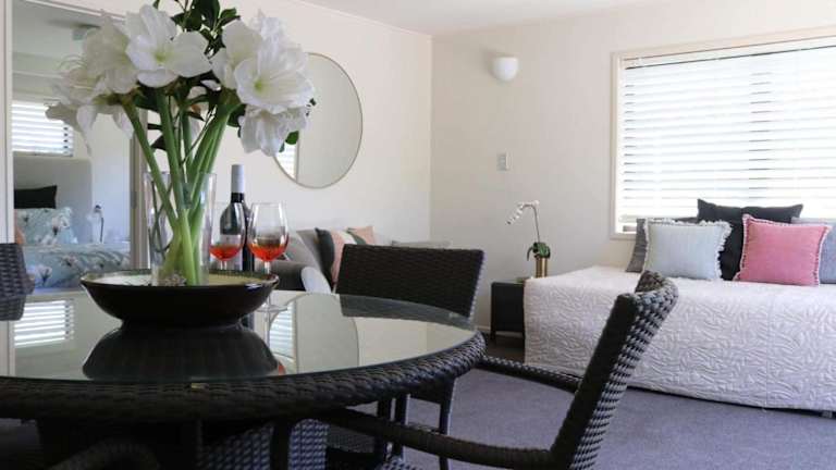 Das Retreat on Rita liegt ideal in Mount Maunganui, nur wenige Meter vom wunderschönen Strand Mount Maunganui entfernt. Auch der Strand Pilot Bay ist in kurzer Entfernung erreichbar. Die Lage bietet einen einfachen Zugang zu den Stränden und ermöglicht es den Gästen, die malerische Küstenlandschaft voll auszukosten. In der Umgebung gibt es auch zahlreiche Restaurants, Bars und Geschäfte, die zum Bummeln und Entdecken einladen. Das ASB Baypark Stadium und die ASB Baypark Arena sind ebenfalls in der Nähe und bieten Unterhaltungsmöglichkeiten für Sport- und Konzertliebhaber.