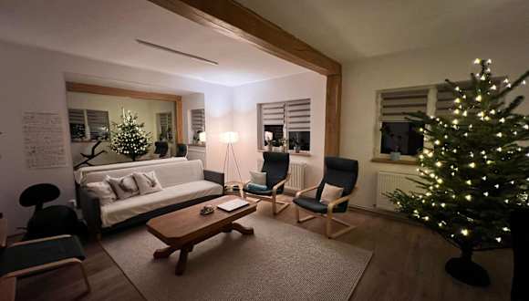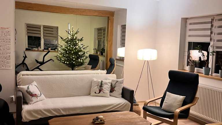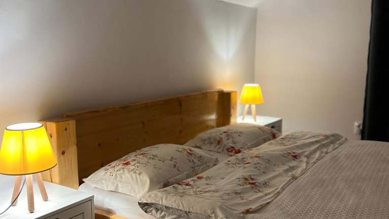 Die Ferienwohnung umfasst zwei Schlafzimmer und eine voll ausgestattete Küche. Zudem gibt es einen Balkon mit Gartenblick.