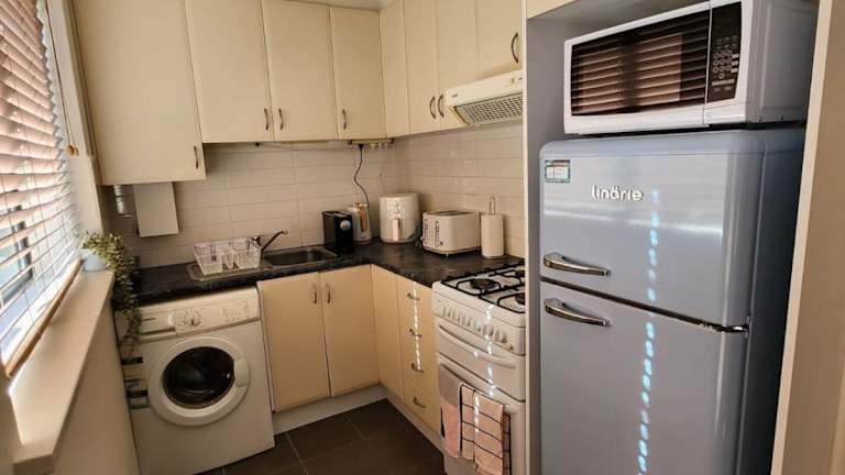 Die Ferienwohnung umfasst 1 Schlafzimmer und bietet eine voll ausgestattete Küche mit Kühlschrank und Ofen. Das Badezimmer ist mit einer Dusche und kostenlosen Pflegeprodukten ausgestattet. Zudem steht eine Waschmaschine zur Verfügung. Handtücher und Bettwäsche werden bereitgestellt.