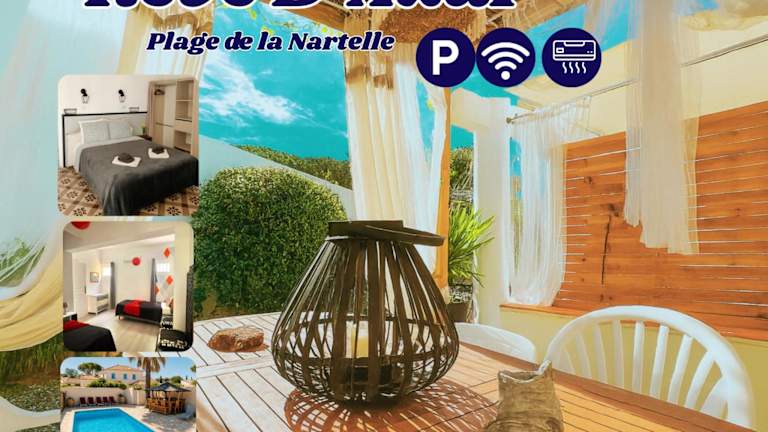 Die Unterkunft befindet sich im Bezirk Strand von La Nartelle in Sainte-Maxime, nur 200 m vom Strand von Nartelle entfernt. Weitere Strände wie Plages des Sardinaux und Plage de la Madrague sind 1,2 km und 1,8 km entfernt. Der nächstgelegene Flughafen ist der Flughafen Toulon-Hyères, 57 km entfernt.