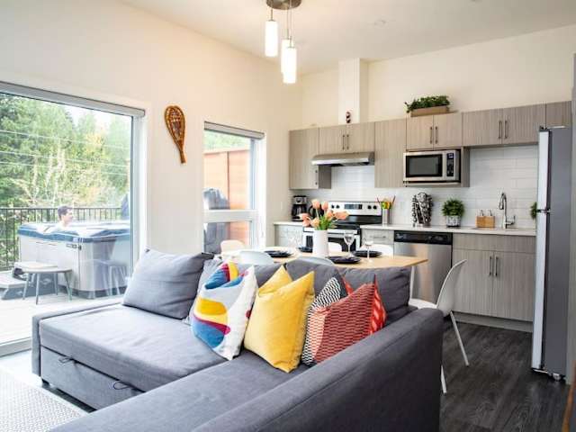 Das Reved Up & Out - Remarkable Two Bedroom Condo liegt in Revelstoke und bietet eine ideale Lage für Naturliebhaber und Aktivurlauber. Das Eisenbahnmuseum Revelstoke ist nur 4,7 km entfernt und der Enchanted Forest Revelstoke erreichen Sie nach 6,1 km. Der Skytrek Adventure Park Revelstoke ist ebenfalls nur 7,3 km entfernt. Der nächstgelegene Flughafen, der internationale Flughafen Kelowna, ist etwa 189 km entfernt.