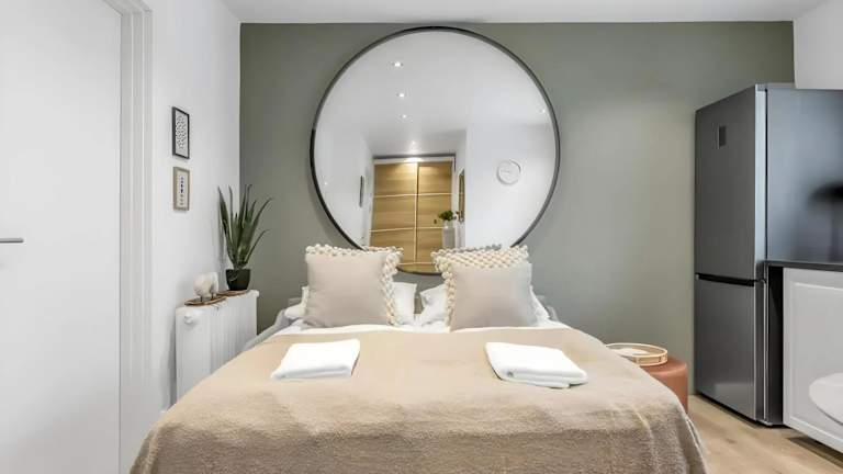 Die Unterkunft verfügt über ein Schlafzimmer mit einem Kingsize-Bett, ein Wohnzimmer und eine voll ausgestattete Küche mit Kühlschrank und Kaffeemaschine. Das Badezimmer ist mit einer Dusche und kostenfreien Pflegeprodukten ausgestattet. Handtücher und Bettwäsche werden bereitgestellt.