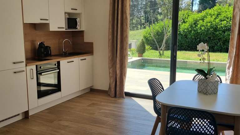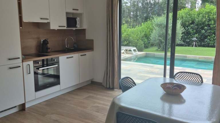 Rez de villa avec piscine privée, wifi, jardin clôturé bietet eine Ferienwohnung im Erdgeschoss mit einem saisonalen Außenpool, einem Garten und einer Terrasse. Es stehen kostenfreies WLAN und ein eigener Pool zur Verfügung. Ein kostenloser Privatparkplatz ist ebenfalls vorhanden.