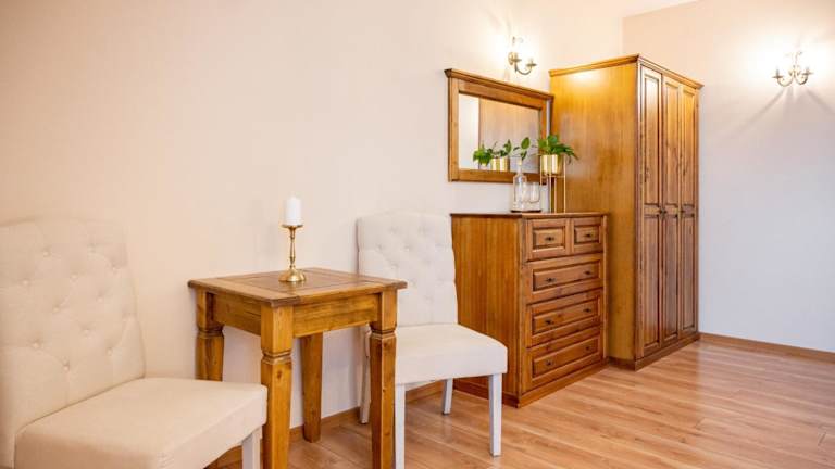 Die Penzion Sivý Kameň befindet sich im charmanten Dorf Podhradie, nur eine kurze Fahrt von den beliebten Städten Bojnice und Prievidza entfernt. Die Lage bietet Ihnen die Möglichkeit, die Sehenswürdigkeiten und Attraktionen dieser Region bequem zu erkunden. In der unmittelbaren Umgebung der Pension gibt es auch schöne Radwege und Möglichkeiten zum Wandern im Vtáčnik-Gebirge. Das Dorf Koš ist nur 10 Fahrminuten entfernt und bietet Ihnen die Möglichkeit, eine Partie Golf zu spielen. Für Skifahrer ist der nächste Skilift ebenfalls in nur 15 Fahrminuten erreichbar. Wenn Sie Wasserspaß suchen, liegt der Wasserpark in Sebedražie nur 10 Fahrminuten entfernt.