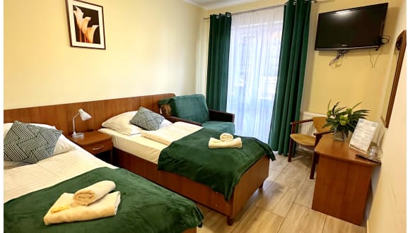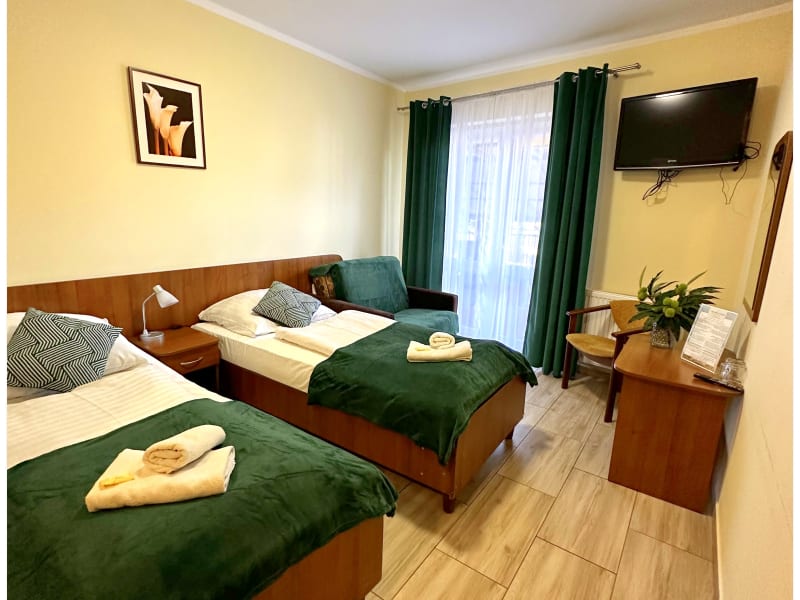 Die Zimmer in der Rezydencja Korab sind komfortabel eingerichtet und verfügen über einen Balkon, einen Schreibtisch und einen TV. Kostenfreies WLAN ist ebenfalls vorhanden. Die Badezimmer sind geräumig und mit einer Duschkabine ausgestattet.