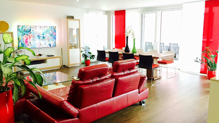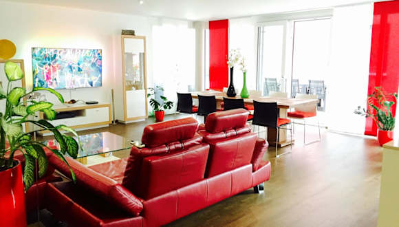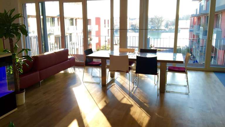 Das Rhein Melodie riverview luxury liegt im Stadtteil Petershausen-West in Konstanz. Der Hauptbahnhof Konstanz ist nur 1,7 km entfernt und die Klosterinsel Reichenau erreichen Sie nach 10 km. In der Nähe befindet sich auch Olma Messen St. Gallen, das 39 km entfernt ist. Die Fußgängerzone von Konstanz ist 1,6 km entfernt und das Bodenseestadion erreichen Sie nach 4 km. Der Flughafen Friedrichshafen ist 32 km entfernt.