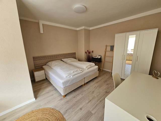 Die Ferienwohnung besteht aus einem Schlafzimmer, einem Wohnzimmer und einer voll ausgestatteten Küche, die mit einem Kühlschrank und einer Kaffeemaschine ausgestattet ist. Zudem gibt es ein Badezimmer mit Dusche und Haartrockner. Handtücher und Bettwäsche werden zur Verfügung gestellt.
