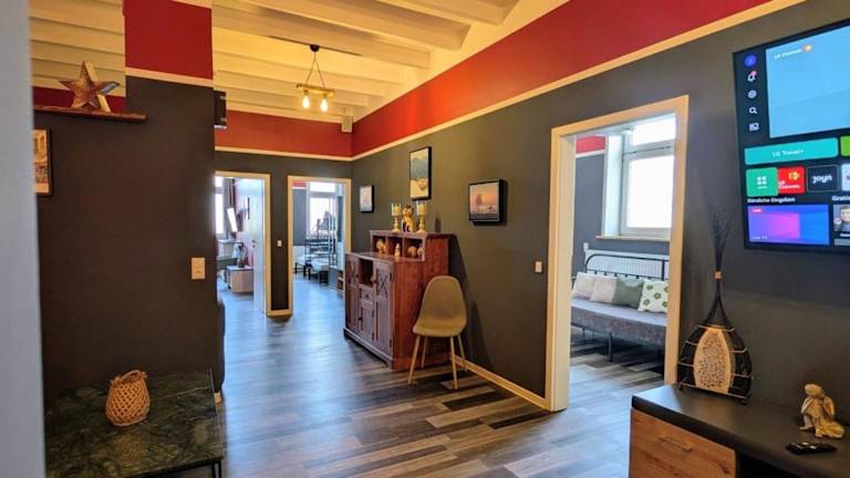 Die Rhin Quartier Ferienwohnung Loft-Style bietet eine geräumige Unterkunft in Loft-Style mit 4 Schlafzimmern, einem Wohnzimmer und 4 Badezimmern. Die Ferienwohnung verfügt über eine voll ausgestattete Küche sowie einen Flachbild-TV. Kostenfreies WLAN ist verfügbar, ebenso wie ein kostenloser Privatparkplatz.