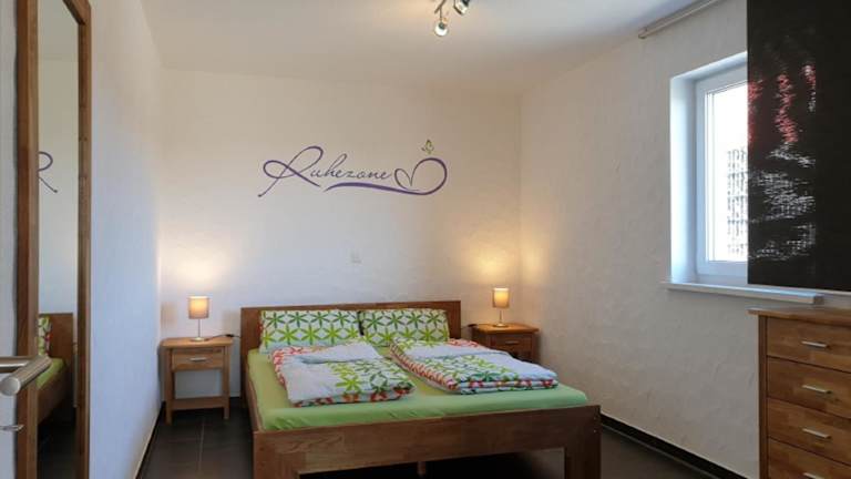 Die Ferienwohnung umfasst ein Schlafzimmer, ein Wohnzimmer, eine gut ausgestattete Küchenzeile sowie ein Badezimmer mit Dusche und Badewanne. Des Weiteren sind ein Satelliten Flachbild-TV, Handtücher und Bettwäsche vorhanden. Die Unterkunft besitzt zudem eine Terrasse, die einen Blick auf den Garten bietet.