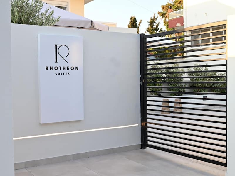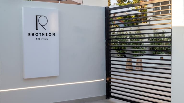 Die Rhotheon Suites bieten Übernachtungsmöglichkeiten mit Terrasse oder Balkon. Zur Ausstattung der Unterkunft gehören ein Flachbild-TV, kostenloses WLAN, ein saisonaler Außenpool sowie ein Garten. Die Unterkunft wird von einem privaten Gastgeber geführt.