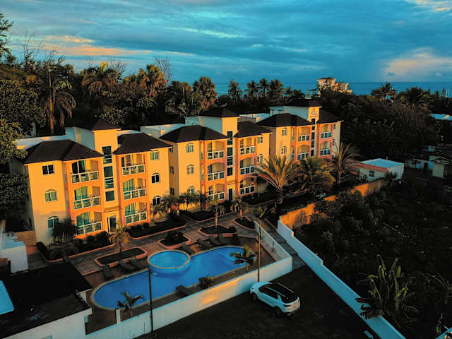 Das Ria Aparta Hotel befindet sich in San Felipe de Puerto Plata, nur 200 Meter vom Strand Playa Bahia Cofresi entfernt. Der nächste Flughafen, der Flughafen Puerto Plata, liegt 24 km von der Unterkunft entfernt. In der Umgebung bietet sich eine schöne Aussicht auf die Berge.