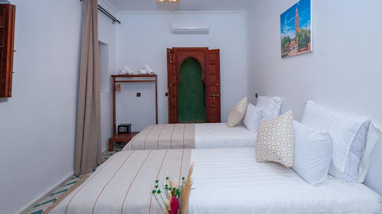 Die Zimmer im Riad Amalia verfügen über eine Veranda oder einen Patio sowie über Bettwäsche und Handtücher.
