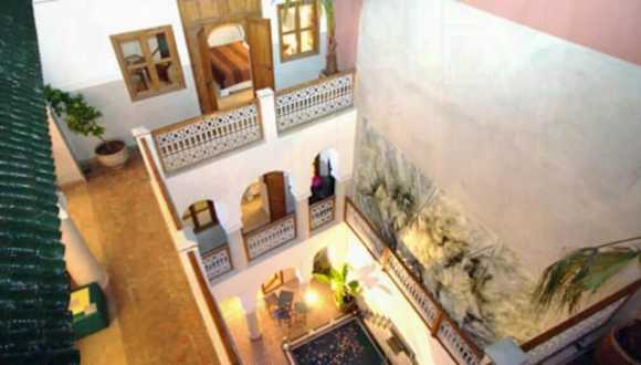 Das Riad Chalymar liegt in der Medina von Marrakesch, ganz in der Nähe des berühmten Djemaa el Fna Platzes. Diese zentrale Lage ermöglicht es Ihnen, die pulsierende Atmosphäre der Stadt zu erleben und die Sehenswürdigkeiten, Märkte und Restaurants bequem zu Fuß zu erkunden. Von der Terrasse des Riads aus haben Sie einen atemberaubenden Blick auf das Atlasgebirge, das die Stadt umgibt.