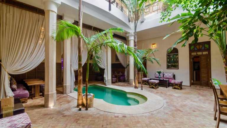Das Dar Alif Hotel in Marrakesch bietet eine ideale Lage, nur 10 Gehminuten vom Platz Jemaa El Fna entfernt. Hier können Sie den Charme und die Schönheit der Stadt hautnah erleben. Das Hotel verfügt über einen kleinen Pool mit Whirlpool sowie einen Innenhof und eine Terrasse, auf denen Sie sich entspannen können. Die Zimmer sind im traditionellen marokkanischen Stil eingerichtet und verfügen über eine Klimaanlage und ein eigenes Bad. Jeden Morgen wird ein kontinentales und marokkanisches Frühstück angeboten, und Sie haben die Möglichkeit, marokkanische Spezialitäten beim gemeinsamen Essen mit Ihren Gastgebern zu genießen.