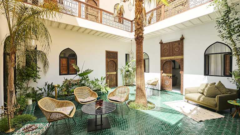 Das Riad Dar Yasaman in Marrakesch ist eine attraktive Unterkunft mit klimatisierten Zimmern, einem Außenpool und kostenlosem WLAN. Es befindet sich in einer günstigen Lage in der Nähe beliebter Sehenswürdigkeiten wie dem Le Jardin Secret und dem Djemaa El Fna Platz. Das Riad bietet auch ein Restaurant und eine Bar, in denen Sie speisen oder entspannen können. Die Zimmer sind gut ausgestattet und verfügen über ein eigenes Bad. Genießen Sie ein kontinentales oder Halal-Frühstück und entspannen Sie im Whirlpool. Das freundliche Personal steht Ihnen jederzeit zur Verfügung.