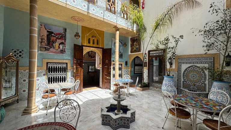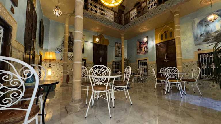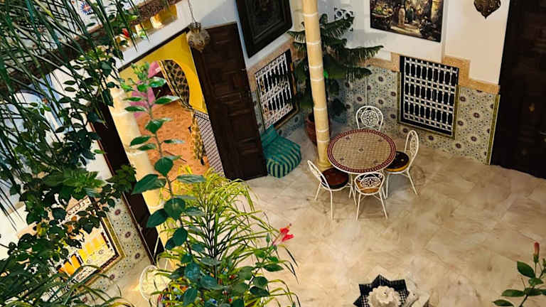 RIAD ESMERALDA By Dar Ouezzani bietet klimatisierte Unterkünfte und ist ausgestattet mit einer Veranda/Patiо, einer Gemeinschaftslounge und einer Terrasse. Die Unterkunft verfügt über kostenloses WLAN in allen Bereichen und erlaubt keinen Zutritt für Junggesellen- oder Junggesellinnenabschiede sowie ähnliche Feiern. Das Mindestalter für den Check-in beträgt 18 Jahre, und Gäste müssen mindestens 10 Jahre alt sein. Haustiere sind nicht gestattet.