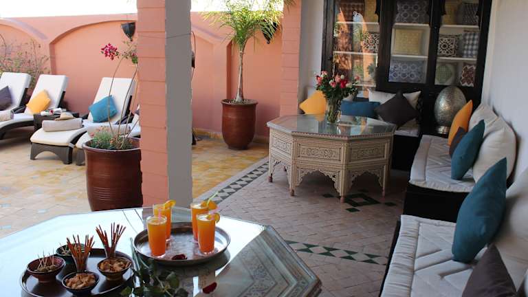 Das Riad Léna & Spa in Marrakesch ist eine ideale Unterkunft für alle, die das authentische Flair der Medina erleben möchten. Das Hotel überzeugt mit seiner zentralen Lage, nur wenige Gehminuten vom bekannten Platz Jamaâ El Fna entfernt. Von der Dachterrasse aus können Sie den atemberaubenden Panoramablick auf das Atlasgebirge und die Medina genießen. Die Zimmer sind rund um einen Innenhof angeordnet und bieten kostenfreies WLAN, Klimaanlage und private Badezimmer. Das Restaurant des Riad Léna & Spa serviert traditionelle marokkanische Küche, die Sie auf der hoteleigenen Terrasse unter einem Segeltuchzelt genießen können. Entspannen Sie im Tauchbecken im Innenhof oder lassen Sie sich mit Massagen und Schönheitsanwendungen verwöhnen. Ein kostenloser Kochkurs wird ebenfalls angeboten. Das Hotel bietet zudem eine 24-Stunden-Rezeption und einen Flughafentransfer.