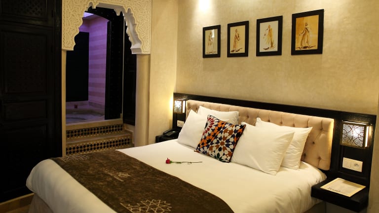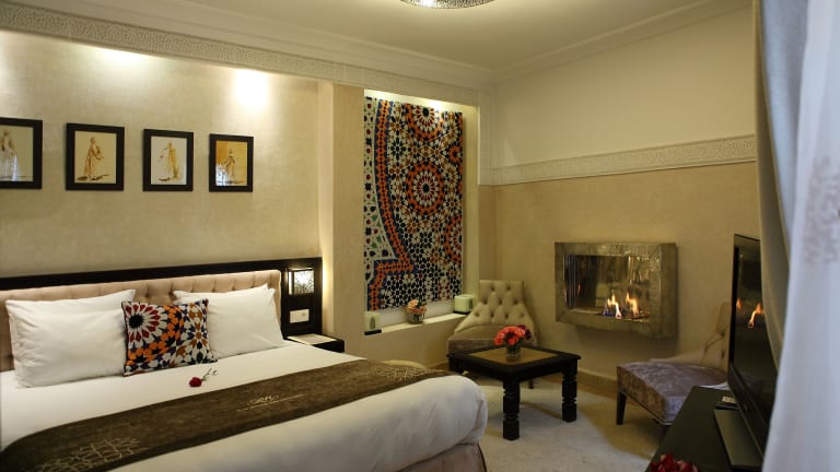 Die Zimmer sind im marokkanischen Stil eingerichtet und verfügen über ein eigenes Bad sowie eine Minibar. Klimaanlage, ein Safe und eine Tee-/Kaffeemaschine stehen bereit. Einige Zimmer bieten zusätzlich einen Whirlpool oder einen separaten Sitzbereich.