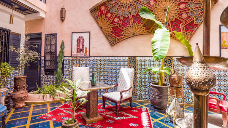Verbringen Sie einen unvergesslichen Aufenthalt im Riad Nouceiba Marrakech in Marrakesch. Das Hotel bietet einen Außenpool, einen Garten, eine Gemeinschaftslounge und eine Terrasse. Das freundliche Personal steht Ihnen rund um die Uhr zur Verfügung, um Ihren Aufenthalt so angenehm wie möglich zu gestalten. Genießen Sie die marokkanische Küche im hoteleigenen Restaurant und erkunden Sie die zahlreichen Sehenswürdigkeiten in der Nähe des Hotels.
