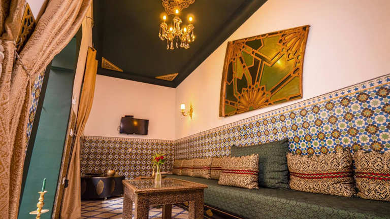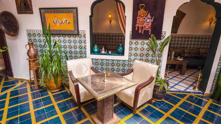 Das Restaurant im Riad Nouceiba Marrakech ist auf die köstliche marokkanische Küche spezialisiert. Probieren Sie traditionelle Gerichte und lassen Sie sich von den Aromen und Gewürzen des Landes verwöhnen. Starten Sie Ihren Tag mit einem leckeren Frühstück und genießen Sie Ihr Abendessen in gemütlicher Atmosphäre.
