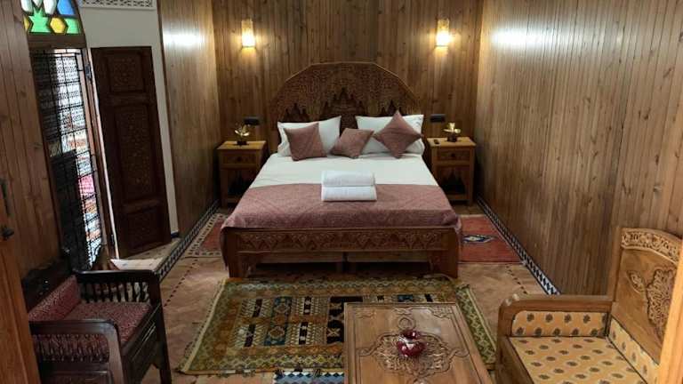 Das Riad Palais Marouane in Meknès ist eine charmante Unterkunft, die nur 28 km von Volubilis entfernt liegt. Mit einer Gemeinschaftslounge, einer Terrasse, einer Bar und kostenfreiem WLAN bietet das Riad seinen Gästen eine komfortable und einladende Atmosphäre. Die klimatisierten Zimmer sind stilvoll eingerichtet und verfügen über ein eigenes Badezimmer, einen Flachbild-TV und kostenfreie Pflegeprodukte. Genießen Sie ein köstliches Frühstück und probieren Sie die vielfältigen Gerichte im Restaurant des Riads. Der Flughafen Fès-Saïs ist nur 69 km entfernt und bietet eine bequeme Anbindung an die Unterkunft.