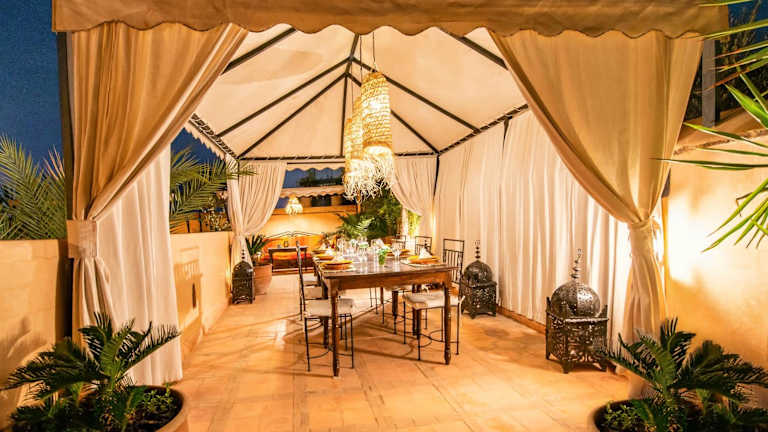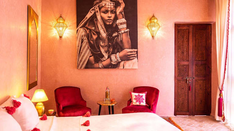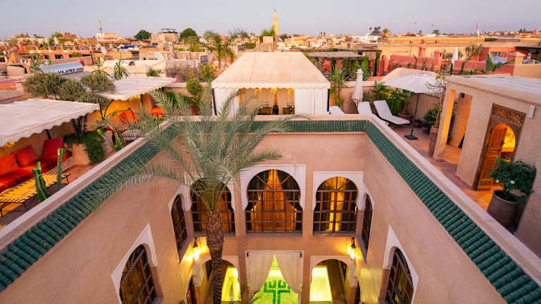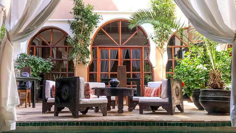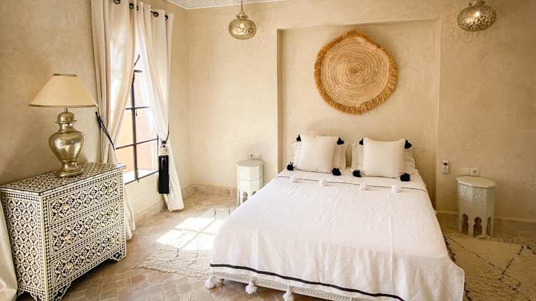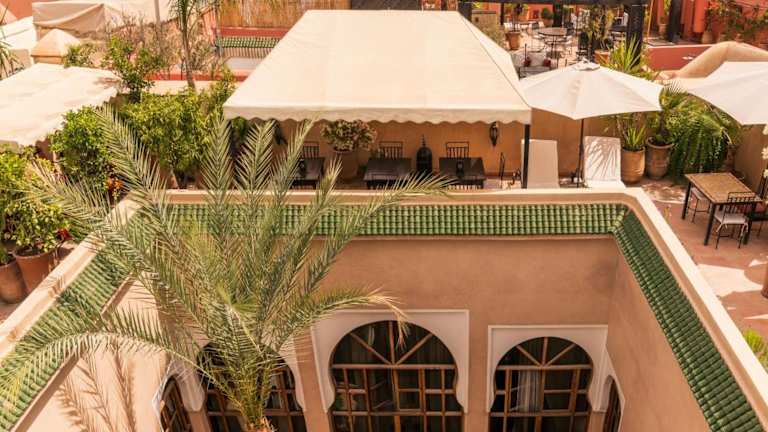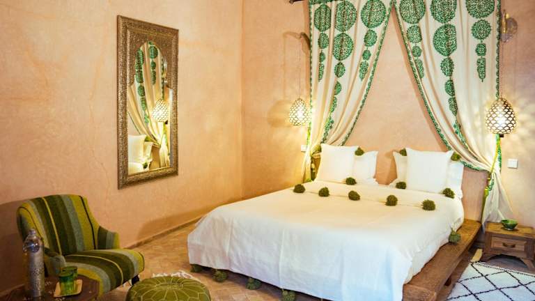 Das Riad Selouane in Marrakesch ist ein zauberhaftes traditionelles Riad, das Ihnen einen authentischen Aufenthalt in der Medina bietet. Genießen Sie die entspannte Atmosphäre im Innenhof mit dem Tauchbecken, entspannen Sie in der Lounge am Kamin oder entspannen Sie auf der Terrasse mit Liegestühlen und einem traditionellen Berberzelt. Das kostenlose Highspeed-WLAN ermöglicht es Ihnen, mit der Welt in Verbindung zu bleiben. Die klimatisierten Zimmer sind gemütlich eingerichtet und verfügen über Fliesenböden und einen Sitzbereich. Das eigene Bad ist mit kostenfreien Pflegeprodukten und einer Badewanne oder Dusche ausgestattet. Beginnen Sie Ihren Tag mit einem köstlichen kontinentalen Frühstück im Riad Selouane. Im Speiseraum können Sie auch marokkanische und internationale Gerichte genießen. Das Riad bietet auch die Möglichkeit, Besichtigungen und Ausflüge in die Medina zu organisieren. Darüber hinaus können Sie sich bei Massageanwendungen entspannen und eine professionelle Baby- und Kinderbetreuung in Anspruch nehmen.