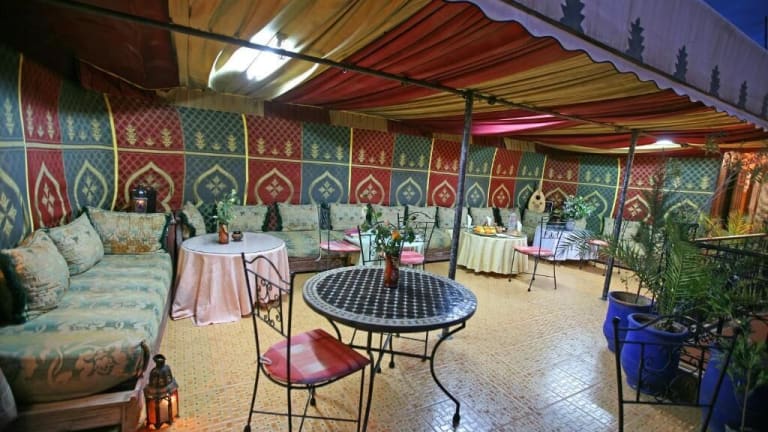 Das Riad Taghazoute ist eine charmante Unterkunft im Herzen von Marrakesch, nur wenige Schritte vom berühmten Platz Djemaa el Fna und der Koutoubia-Moschee entfernt. Hier können Sie den authentischen marokkanischen Stil und die herzliche Gastfreundschaft erleben. Genießen Sie den atemberaubenden Stadtblick von der Terrasse und entspannen Sie sich bei einem Pfefferminztee. Die klimatisierten Zimmer sind im typisch marokkanischen Stil eingerichtet und bieten einen angenehmen Aufenthalt. Beginnen Sie Ihren Tag mit einem köstlichen kontinentalen Frühstück und lassen Sie sich auf Wunsch Mittag- und Abendessen auf der Terrasse servieren. Das freundliche Personal des Riads steht Ihnen auch gerne bei der Organisation von Ausflügen in die Umgebung zur Verfügung. Entdecken Sie die Schönheit des Bahia-Palastes und des Jardin Majorelle, die sich in der Nähe befinden. Der Flughafen Marrakesch Menara ist nur 4,5 km entfernt und bietet einen bequemen Flughafentransfer.
