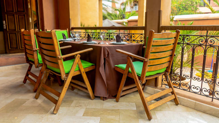 Im Riad Ushuaia finden die Gäste verschiedene Gastronomiemöglichkeiten einschließlich eines Restaurants, eines Speisaums, eines Cafés und einer Bar. Täglich werden ein kontinentales Frühstück sowie Mittagessen angeboten. Auf Wunsch werden spezielle Diätgerichte und Kindermenüs zubereitet. Genuss kann auch beim Showcooking erlebt werden.