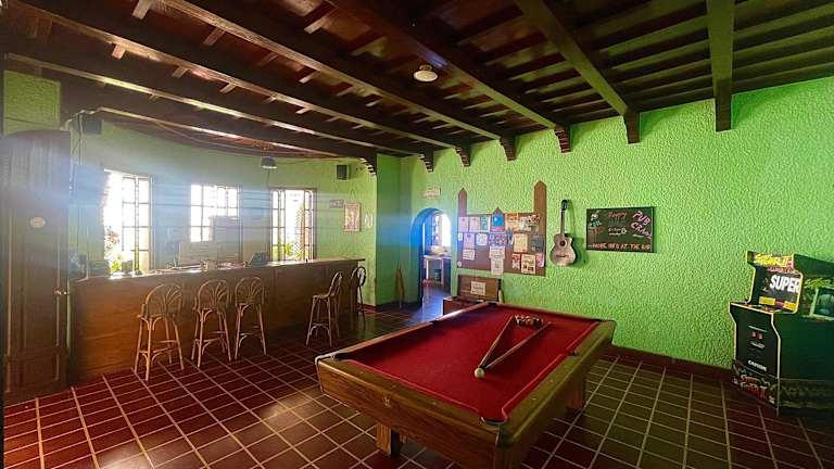 Das Castello Hostal Santa Ana in Santa Ana ist eine charmante Unterkunft, die eine gemütliche Atmosphäre und eine Vielzahl von Annehmlichkeiten bietet. Der Garten, die Gemeinschaftslounge und die Terrasse laden zum Entspannen ein, während die Bar eine ideale Möglichkeit bietet, den Tag ausklingen zu lassen. Mit einer Gemeinschaftsküche und kostenlosem WLAN in allen Bereichen fühlen Sie sich wie zu Hause. Die Zimmer sind komfortabel eingerichtet und bieten entweder Zugang zu einem Gemeinschaftsbad oder ein eigenes Badezimmer. Einige Zimmer verfügen über einen Balkon oder bieten einen malerischen Blick auf die Stadt. Die Pension bietet zudem Freizeitaktivitäten wie Billard und Fahrradverleih an. Der internationale Flughafen El Salvador ist nur 102 km entfernt, was die Anreise zum Hostal sehr bequem macht.