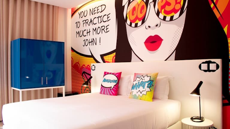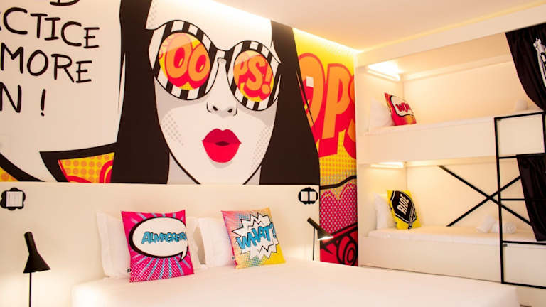 Die Zimmer sind im Pop-Art-Stil gestaltet und enthalten Annehmlichkeiten wie Klimaanlage, einen Flachbild-Sat-TV und ein eigenes Bad mit Dusche. Sie verfügen über ein Queensizebett und wahlweise ein Sofabett. Zusätzliche rollstuhlgerechte Zimmer sind buchbar. Zur Zimmerausstattung gehören auch Schreibtisch, Hosenpresse und WLAN. Familien- und Nichtraucherzimmer sind ebenfalls verfügbar.