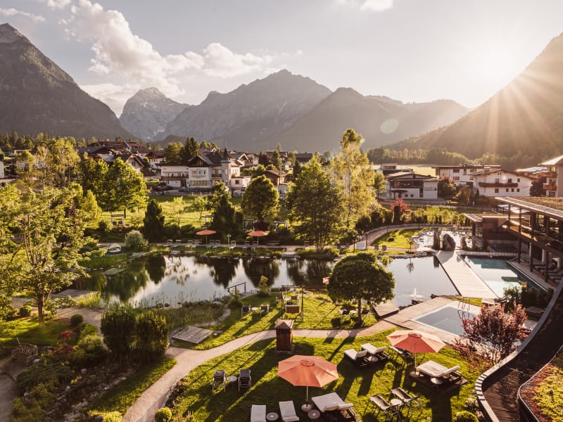 Erleben Entspannen Genießen. Ihr Urlaubsparadies am Achensee in Tirol bietet Ihnen eine einzigartige Auszeit in traumhafter Lage mit weitläufigem Park und einem Biobadeteich - des Achensees kleiner Bruder. Ein Resort von Generationen und für Generationen, in dem Erholung zelebriert wird. Ob Groß oder Klein, hier finden alle das passende Angebot: Das neue SeeSpa (adults only) mit zwei Pools, Panoramaruheräumen und der einzigartigen SeeSauna mit einem in den Teich integrierten Tauchbecken, fügt sich harmonisch in den bereits bestehenden Spa-Bereich mit Saunalandschaft und Indoor-Outdoorpool. Und das alles direkt am Park mit Blick in die Berge. Neu ist zudem der Mini-Splash Indoor-Badebereich für Kleinkinder genauso wie ein großzügiger Bewegungsraum mit Waldpanorama und ein umfangreich ausgestatteter Fitnessraum. Den Gast erwartet im Rieser ein facettenreiches Aktiv- und Freizeitangebot, u.a. mit täglichem betreuten Aktiv- und Vitalprogramm, Tennisplätzen, Pferdeschlittenfahrten im Winter, ganz zu schweigen von den schier endlosen Aktivmöglichkeiten am Achensee rund ums Jahr. Familien dürfen sich nicht nur auf den neuen Poolbereich, sondern auch auf einen weitläufigen Spielplatz, ein buntes Kinderspielzimmer, einen Jugendraum uvm. freuen.