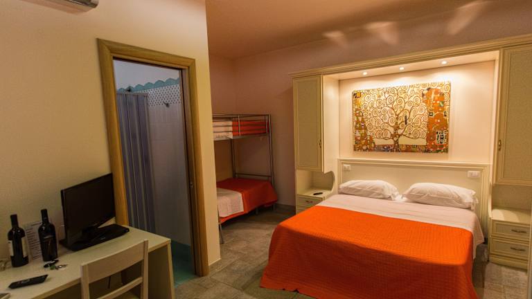 Die Zimmer im Rifugio Delle Grotte sind komfortabel und bieten eine angenehme Atmosphäre für Ihren Aufenthalt. Jedes Zimmer verfügt über eine Terrasse, auf der Sie entspannen und die Umgebung genießen können. Die Zimmer sind klimatisiert und verfügen über einen LED-TV, eine Minibar und einen DVD-Player. Das Badezimmer ist mit einem Haartrockner und Bademänteln ausgestattet.