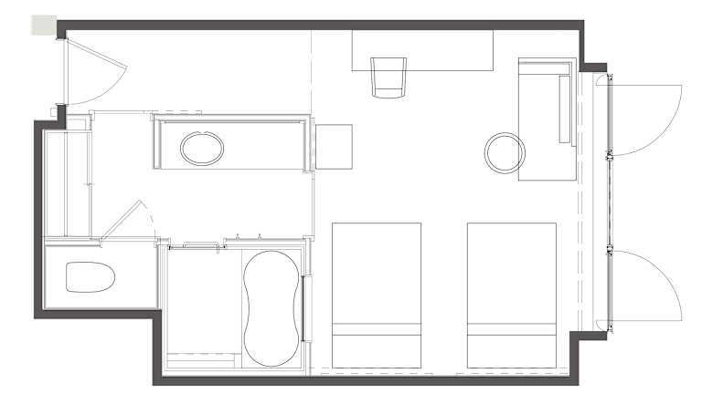 Die klimatisierten Zimmer sind im westlichen Stil gestaltet und bieten ein angenehmes Raumklima. Zur Grundausstattung gehören ein Flachbild-Sat-TV, ein Kühlschrank, ein Wasserkocher für die Zubereitung von grünem Tee, sowie ein Schreibtisch. Darüber hinaus sind die Zimmer mit Hausschuhe, einem Safe und einem eigenen Bad mit Haartrockner und Zahnputzsets ausgestattet. Es stehen auch rollstuhlgerechte Zimmer sowie Familien- und Nichtraucherzimmer zur Verfügung.