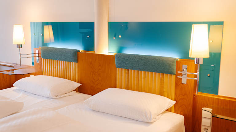 Nach umfangreicher Modernisierung 2015 stehen unseren Gästen durchweg klimatisierte, individuell gestaltete Nichtraucher-Zimmer und Suiten mit trendigen Design-Bädern, Boxspring-Betten, TV-Flatscreen, Direktwahltelefon, Minibar, Safe, größtenteils Balkon/Dachterrasse und vielen Extras zur Verfügung. Die Nutzung des Fitnessraumes und der Internetzugang über WLAN sind ebenso im Zimmerpreis inbegriffen wie das üppige Frühstück vom Buffet und der freie Zugang zur Wellness-Oase mit Solebad und Sauna-Erlebniswelt. Von den Zimmern aus gelangt man direkt in den SPA-Bereich – Leihbademäntel und Fön liegen bereit!en Schreibtisch. Ihr Zimmer verfügt über ein Telefon, ein Radio sowie einen Fernseher. Allergikerzimmer sind in diesem Haus auch erhältlich.