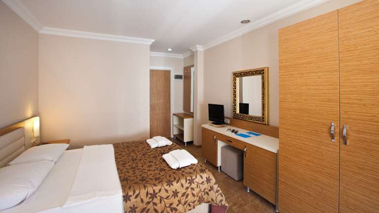 Das Risa Hotel befindet sich in zentraler Lage in Bitez und ist nur wenige Meter vom Sandstrand entfernt. In der Umgebung finden Sie verschiedene Geschäfte, Restaurants und Bars. Der Flughafen ist etwa 50 km entfernt und der Bahnhof ca. 6 km.