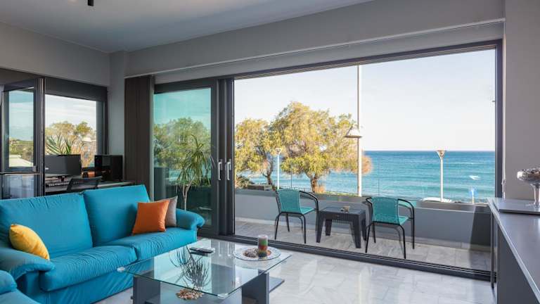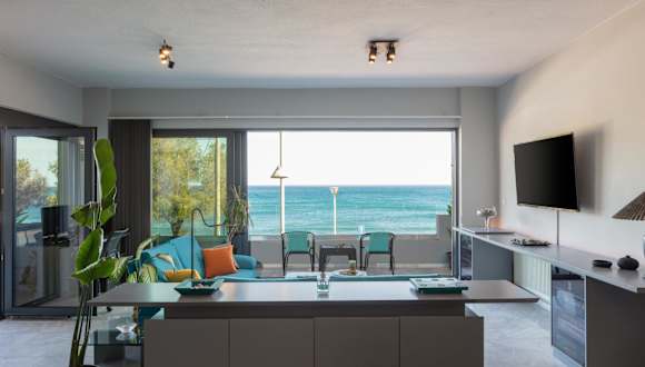 Das Rithian Blue Coast 2 bedroom seaview apartment bietet eine Autovermietung, so dass Sie die Umgebung bequem erkunden können. Der Strand in der Nähe bietet verschiedene Wassersportmöglichkeiten und die Möglichkeit, sich in der Sonne zu entspannen. Es gibt auch viele Wander- und Radwege in der Umgebung, die Sie erkunden können.