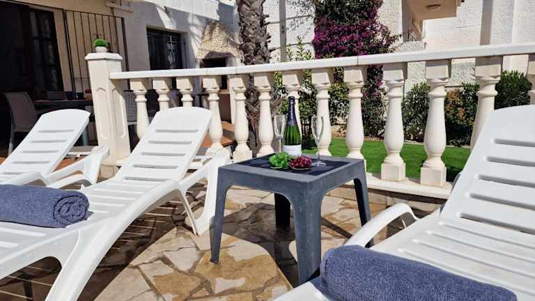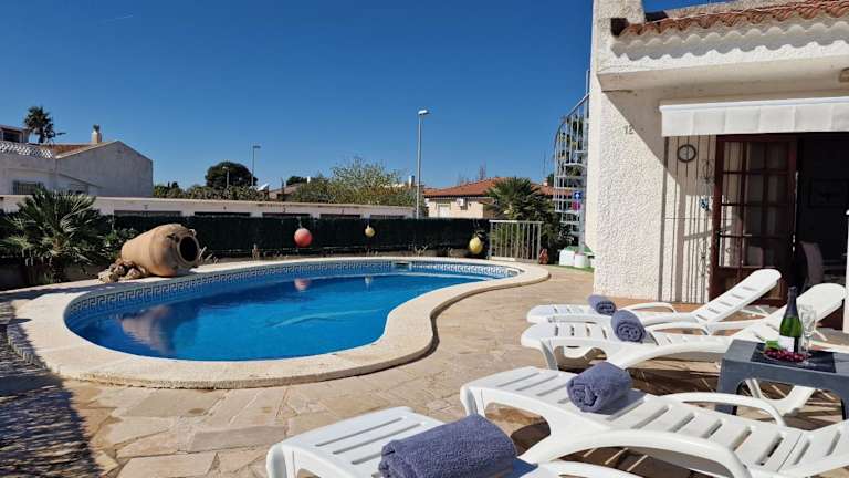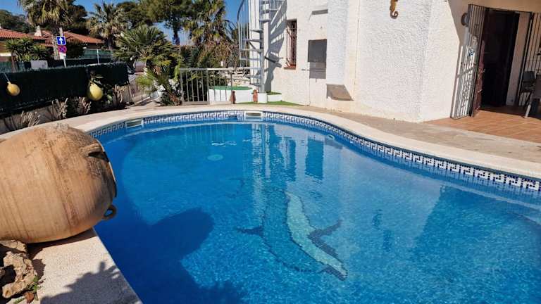 Riumar "Noella" bietet eine klimatisierte Unterkunft mit einem Garten und einem Außenpool. Zu den Annehmlichkeiten gehören außerdem ein hauseigener Service sowie die Möglichkeit, einen Hundestrand in der Nähe zu nutzen. Die Einrichtung umfasst 2 Schlafzimmer und 1 Badezimmer, ergänzt durch eine Terrasse mit Poolblick.