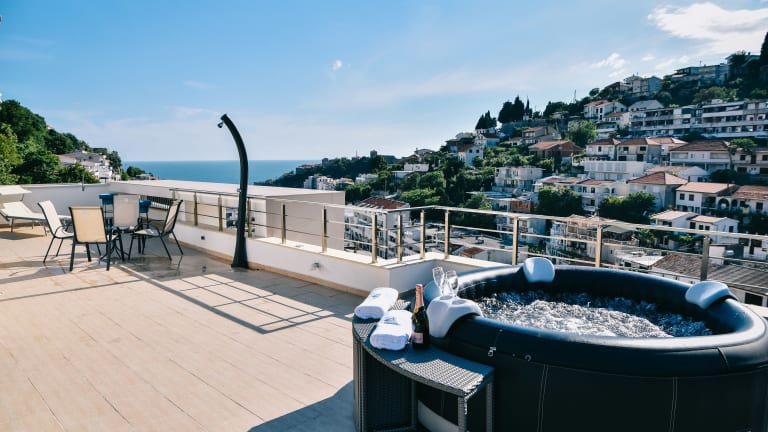 Das Riva Luxury in Ulcinj bietet seinen Gästen einen luxuriösen Aufenthalt in der Nähe des Strandes und der Altstadt. Mit kostenfreiem WLAN, privaten Parkplätzen und einer Terrasse mit Grillmöglichkeiten ist dieses Hotel die perfekte Wahl für einen entspannten Urlaub. Die klimatisierten Unterkünfte sind modern eingerichtet und verfügen über eine voll ausgestattete Küche, ein eigenes Bad und einen Balkon. Das Highlight des Apartments ist der Whirlpool, in dem Sie sich nach einem langen Tag entspannen können. Die Lage des Hotels ermöglicht es Ihnen auch, die umliegenden Sehenswürdigkeiten wie den Hafen von Bar und den Skutarisee zu erkunden. Für Ihre Anreise bietet das Hotel einen kostenpflichtigen Flughafentransfer an.