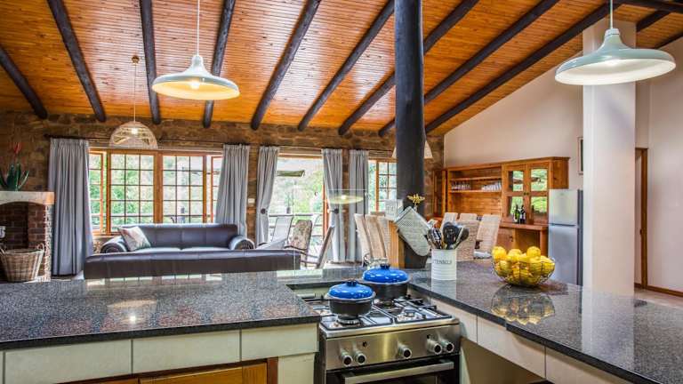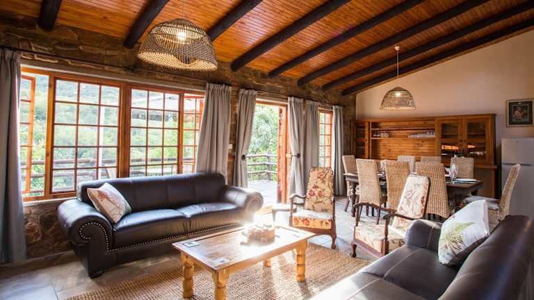 Das Rivendell Trout Estate bietet luxuriöse Villen mit 4 Schlafzimmern, jeweils mit eigenem Bad. Der offene Wohnbereich ist geräumig und verfügt über einen großen Kamin, der für eine gemütliche Atmosphäre sorgt. Die möblierte Terrasse mit Grillmöglichkeiten lädt zum Entspannen im Freien ein. Die voll ausgestattete Küche bietet alles, was Sie für Ihren Aufenthalt benötigen, einschließlich einer Kaffeemaschine und eines Geschirrspülers.