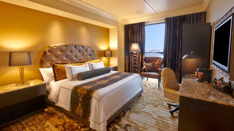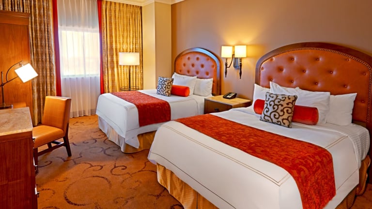 Die Zimmer im River City Casino and Hotel sind geräumig und bieten modernen Komfort. Jedes Zimmer verfügt über einen 42-Zoll-Flachbild-TV, kostenfreies WLAN und eine iPod-Dockingstation. Die Badezimmer sind mit einem zusätzlichen TV und einer Regendusche ausgestattet. Hier können Sie sich nach einem ereignisreichen Tag entspannen und erfrischen.