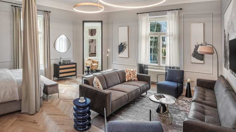 Die Unterkunft befindet sich in Prag und bietet einen Stadtblick. Sie liegt 1,5 km von der Karlsbrücke und 1,6 km vom Prager Rathaus mit astronomischer Uhr entfernt. In der Umgebung sind auch Sehenswürdigkeiten wie der Altstädter Ring, die Prager Hochburg und das Nationalmuseum Prag zu finden. Der nächstgelegene Flughafen ist der Václav-Havel-Flughafen Prag, der 13 km entfernt liegt, und es gibt einen kostenpflichtigen Flughafentransfer.