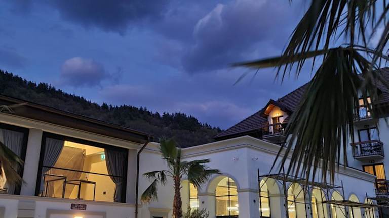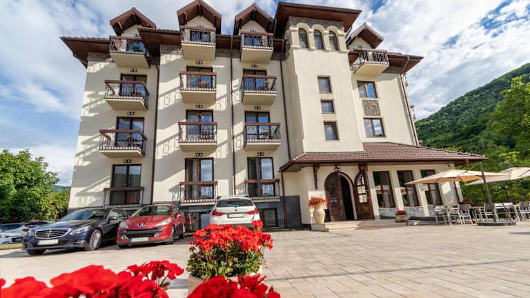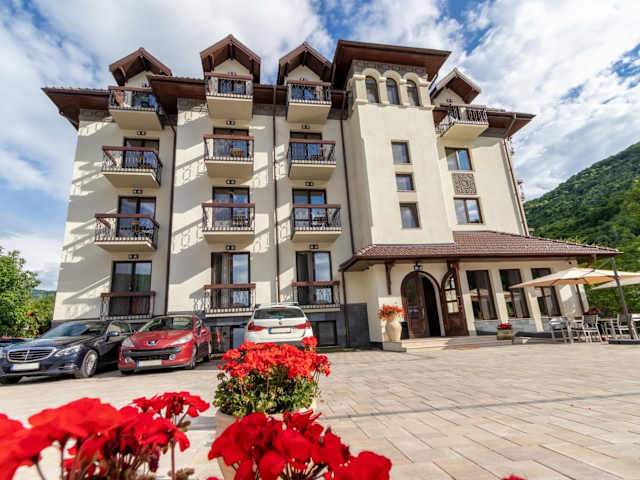 Verbringen Sie einen entspannten Aufenthalt im RIVER Hotel & SPA in Călimăneşti. Das Hotel bietet komfortable Unterkünfte, ein Restaurant mit köstlicher Küche und kostenfreies WLAN. Genießen Sie den Blick auf die Berge von Ihrem Balkon aus und nutzen Sie die Annehmlichkeiten wie die Sonnenterrasse. Das freundliche Personal steht Ihnen rund um die Uhr zur Verfügung und bietet Ihnen einen Zimmerservice sowie einen Autovermietungsservice. Entdecken Sie die Umgebung beim Angeln oder besuchen Sie die nahegelegene Mînăstirea Cozia.