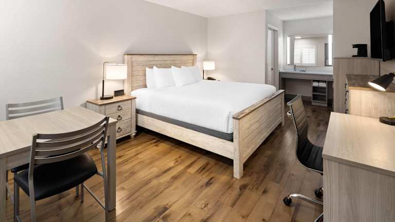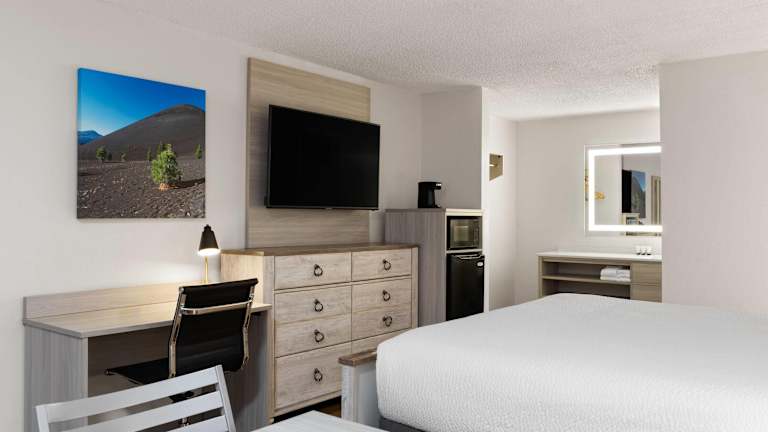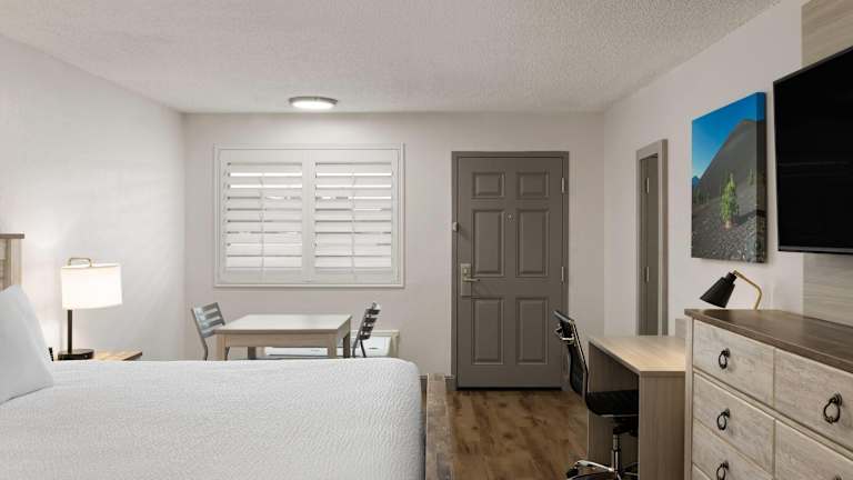Das River Inn in Susanville ist ein haustierfreundliches Motel, das eine ideale Unterkunft für Reisende bietet, die den Bizz Johnson National Recreation Trail erkunden möchten. Die Zimmer sind komfortabel und mit kostenfreiem WLAN ausgestattet, und das freundliche Personal an der 24-Stunden-Rezeption steht Ihnen jederzeit zur Verfügung. Genießen Sie den Aufenthalt in klimatisierten Zimmern mit Kabel-TV und einem gemütlichen Sitzbereich. Der Essbereich verfügt über eine Mikrowelle und einen Kühlschrank, um Ihre Mahlzeiten bequem zuzubereiten. Das eigene Bad bietet eine Badewanne oder eine Dusche, einen Haartrockner und kostenfreie Pflegeprodukte. Starten Sie jeden Morgen mit Kaffee, Tee und heißer Schokolade, die für Sie bereitstehen. Das Motel bietet auch einen Verkaufsautomaten mit kalten Getränken. Kostenfreie Parkplätze stehen zur Verfügung. In der Umgebung gibt es zahlreiche Aktivitäten wie Wandern, und der Eagle Lake und der Lassen Volcanic Nationalpark sind ebenfalls leicht zu erreichen.
