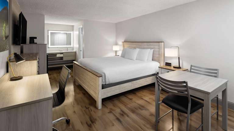 Die Zimmer im River Inn sind komfortabel und bieten kostenfreies WLAN für die Gäste. Jedes Zimmer verfügt über Kabel-TV und einen gemütlichen Sitzbereich. Der Essbereich ist mit einer Mikrowelle und einem Kühlschrank ausgestattet, damit Sie Ihre eigenen Mahlzeiten zubereiten können. Das private Badezimmer verfügt über eine Badewanne oder eine Dusche, einen Haartrockner und kostenfreie Pflegeprodukte.