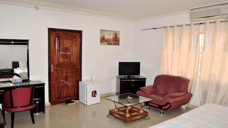 Das Riviera Hotel Benin bietet klimatisierte Zimmer, die mit modernen Annehmlichkeiten ausgestattet sind. Jedes Zimmer verfügt über einen Schreibtisch, eine Kaffeemaschine, einen Kühlschrank, eine Minibar, einen Safe, einen Flachbild-TV, einen Balkon und ein eigenes Badezimmer mit einem Bidet. Einige Zimmer bieten auch eine Terrasse und einen Wasserkocher. Bettwäsche und Handtücher werden gestellt, um Ihren Aufenthalt so angenehm wie möglich zu gestalten.