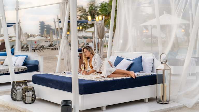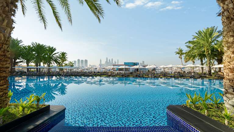 Das Rixos The Palm Dubai Hotel & Suites ist Dubais einziges luxuriöses All-Inclusive-Strandresort auf der berühmten Palm Jumeirah Dubai. Das Strandresort bietet einen Panoramablick auf das azurblaue Wasser des Arabischen Golfs, Dubais ikonische Wolkenkratzer, die glitzernde Skyline von Dubai Marina und die bemerkenswerten Lagunen und die Architektur von Palm Jumeirah selbst. Das Rixos The Palm Dubai befindet sich in bester Lage, nur eine kurze Strecke von Dubais beliebten Touristenzielen und Unterhaltungsvierteln entfernt.