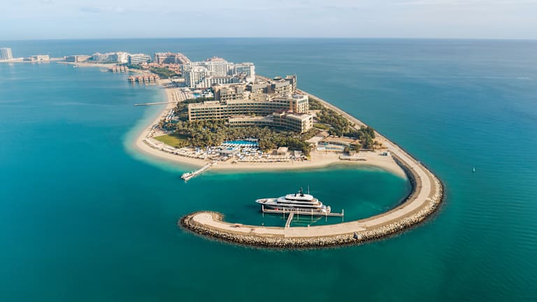 Das Rixos The Palm Dubai Hotel & Suites liegt auf der berühmten Palm Jumeirah, einer der größten künstlichen Inseln der Welt. Suites eine willkommene Pause von der Hektik der Metropole.Die völlige Abgeschiedenheit bietet den Gästen die Möglichkeit, mit der Natur in Kontakt zu treten und mit Familie und Freunden bleibende Erinnerungen zu schaffen. Interessante Punkte Golf Club (Troon International) 2.8 km World’s Largest Waterpark 5.9 km Museum of the Future 32.5 km Jumeirah Mosque 34.9 km Dubai Frame 37.5 km Al Badia Heritage Center 42.7 km IMG Worlds of Adventure 43.1 km Dubai Parks and Resorts 43.5 km Dubai International Airport 45.8 km Dubai Safari Park 55.6 km